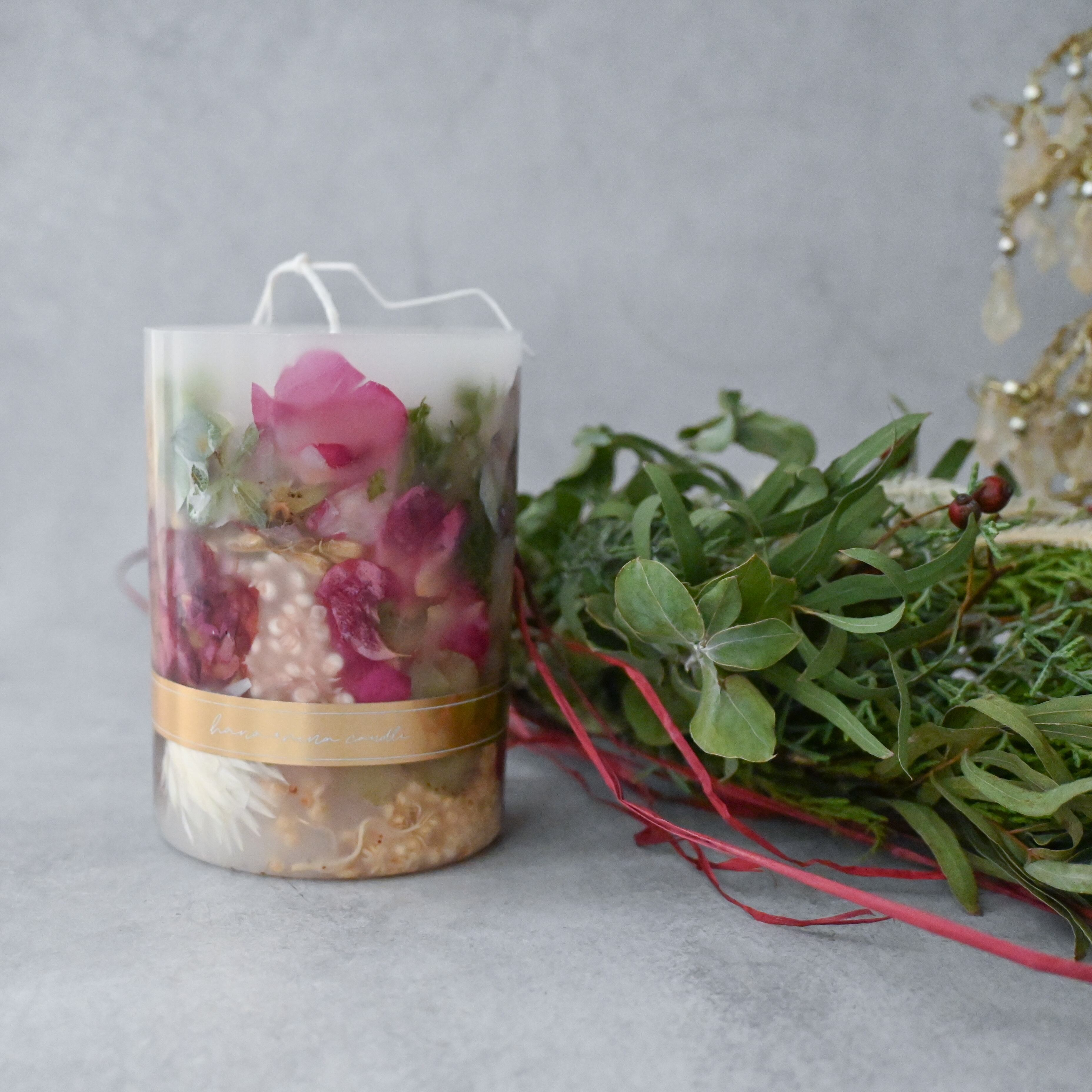 アンティーク感が漂うWoody Rose(ウッディ×ローズの香り)の華やかな薔薇のボタニカルキャンドルとサシェ、焼菓子のギフトセット
