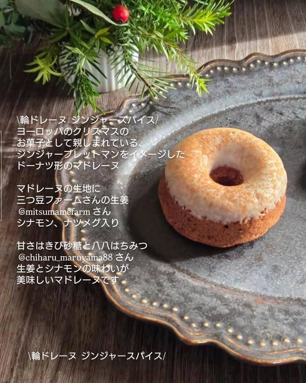クリスマスらしい、シナモンジンジャーの輪ドレーヌとビスコッティ、