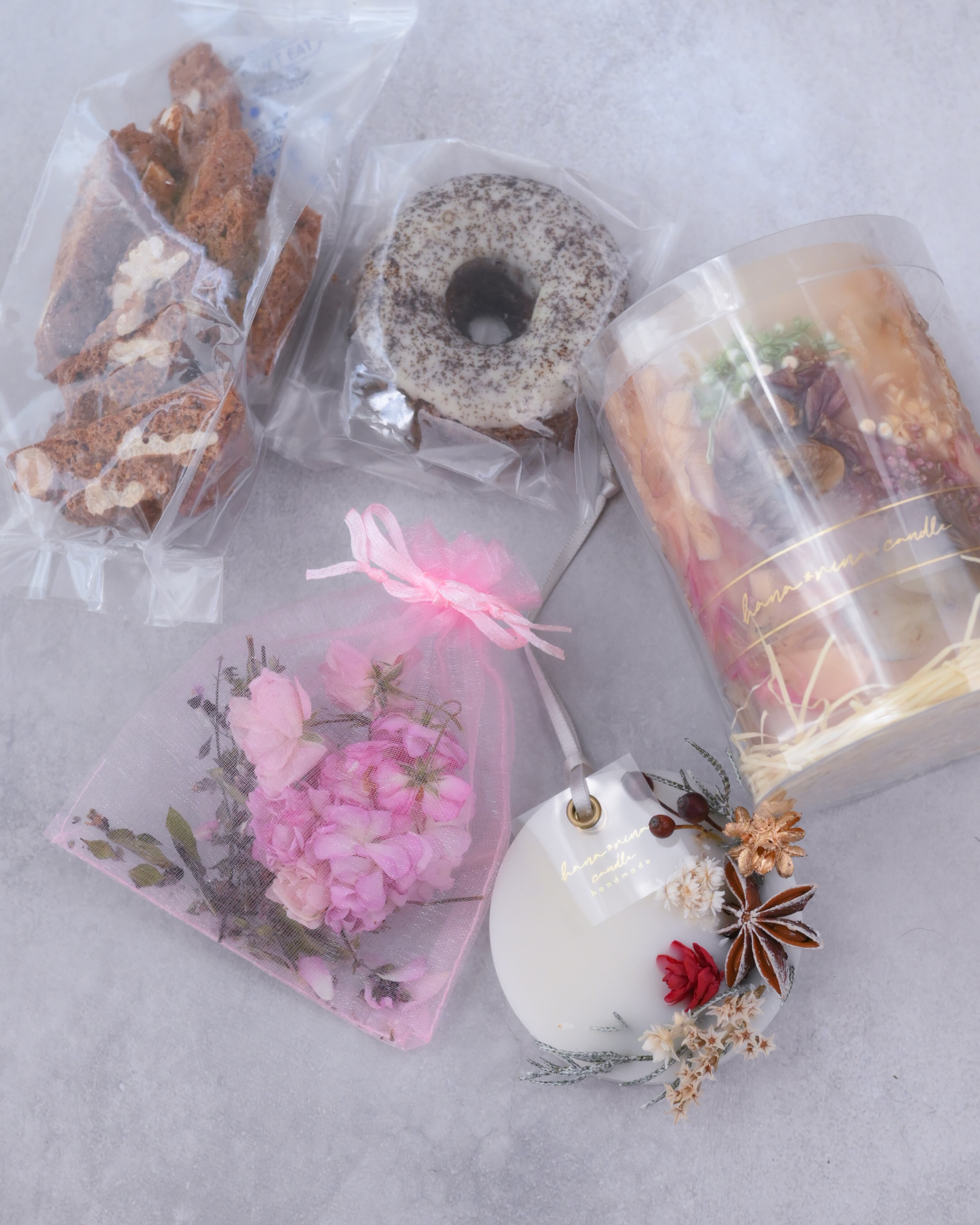 Woody Roseの botanical candleとサシェ、焼菓子のセット