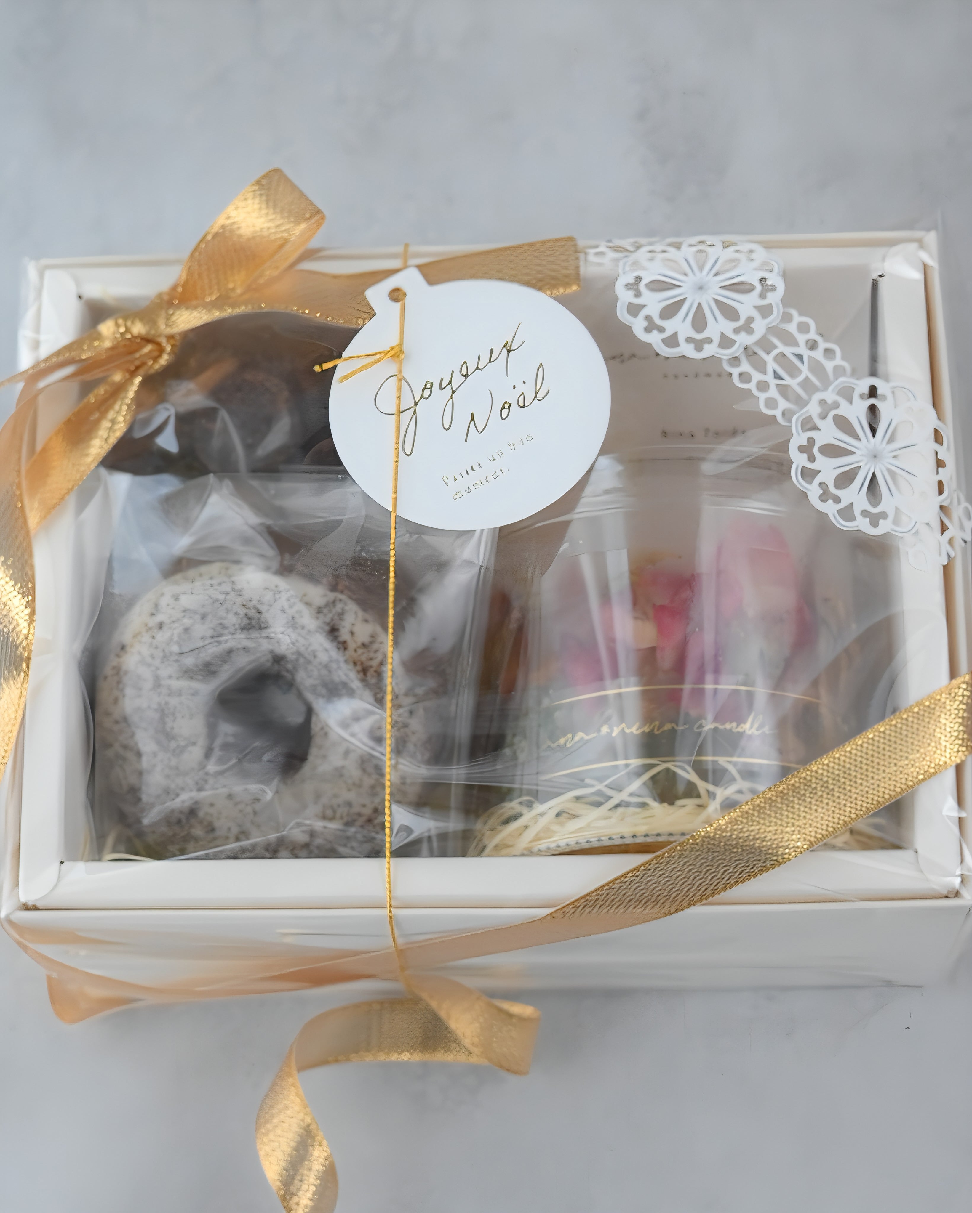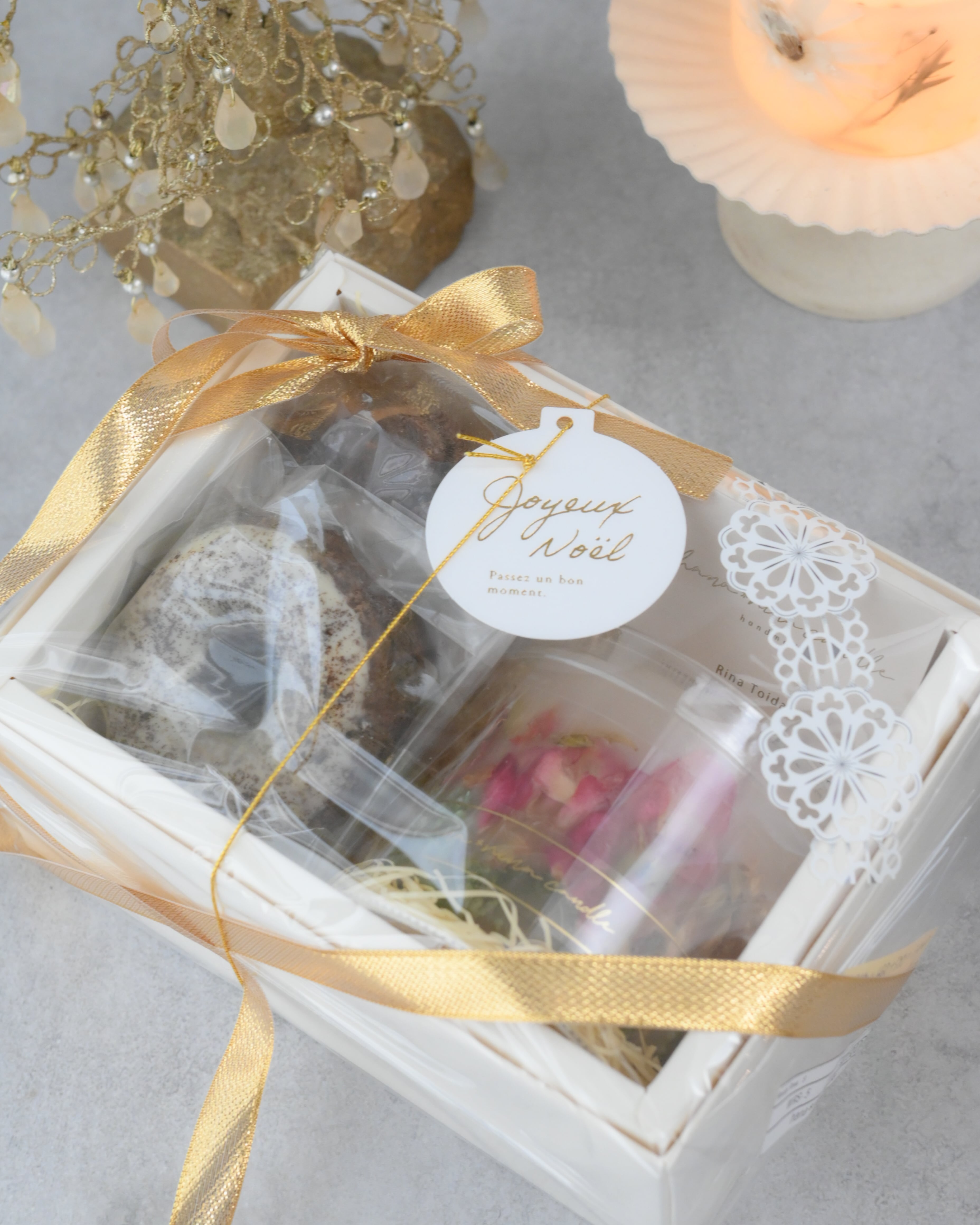 アンティーク感が漂うWoody Rose(ウッディ×ローズの香り)の華やかな薔薇のボタニカルキャンドルと焼菓子のギフトセット