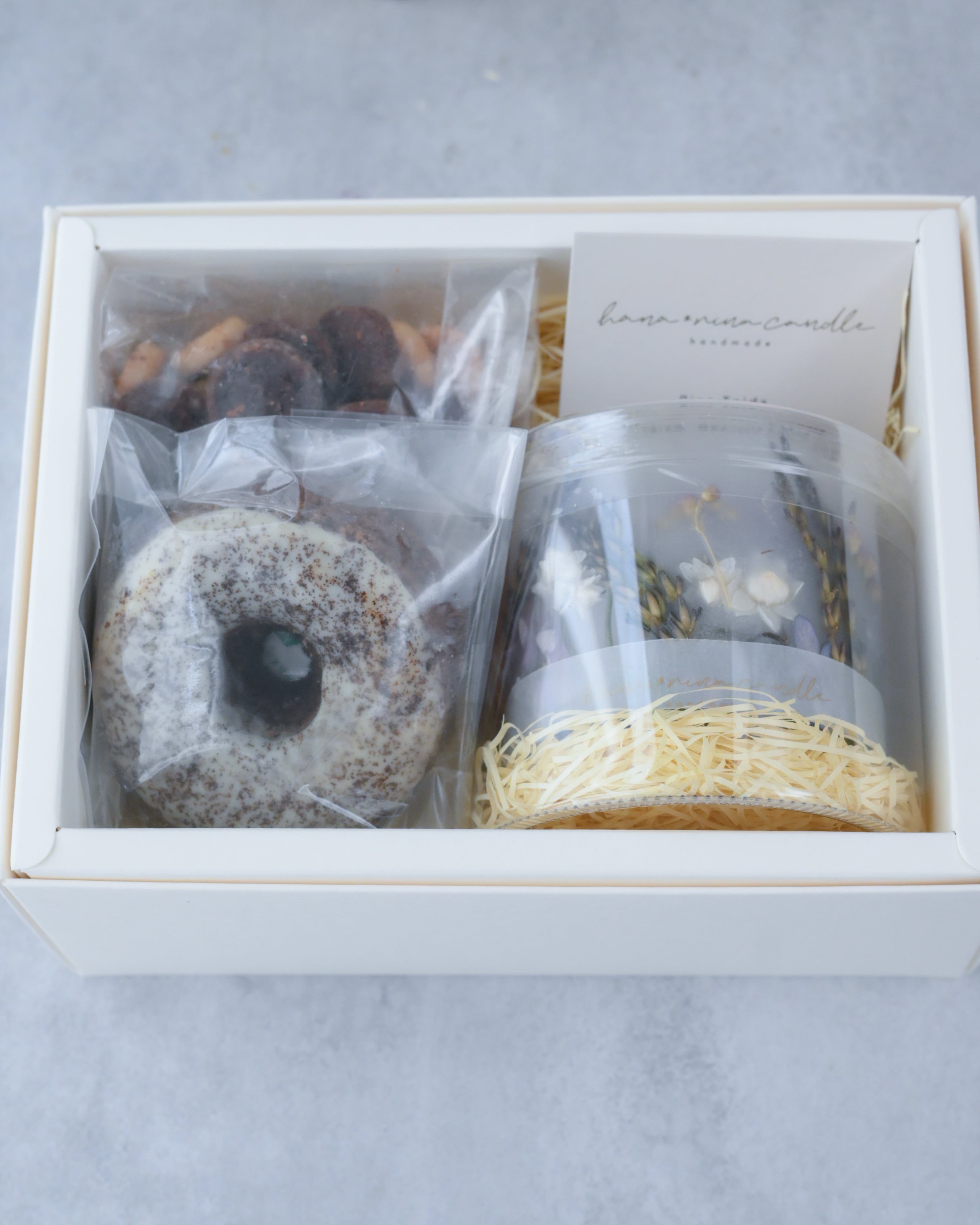 ラベンダーの香りのボタニカルキャンドルと焼菓子のギフトセット