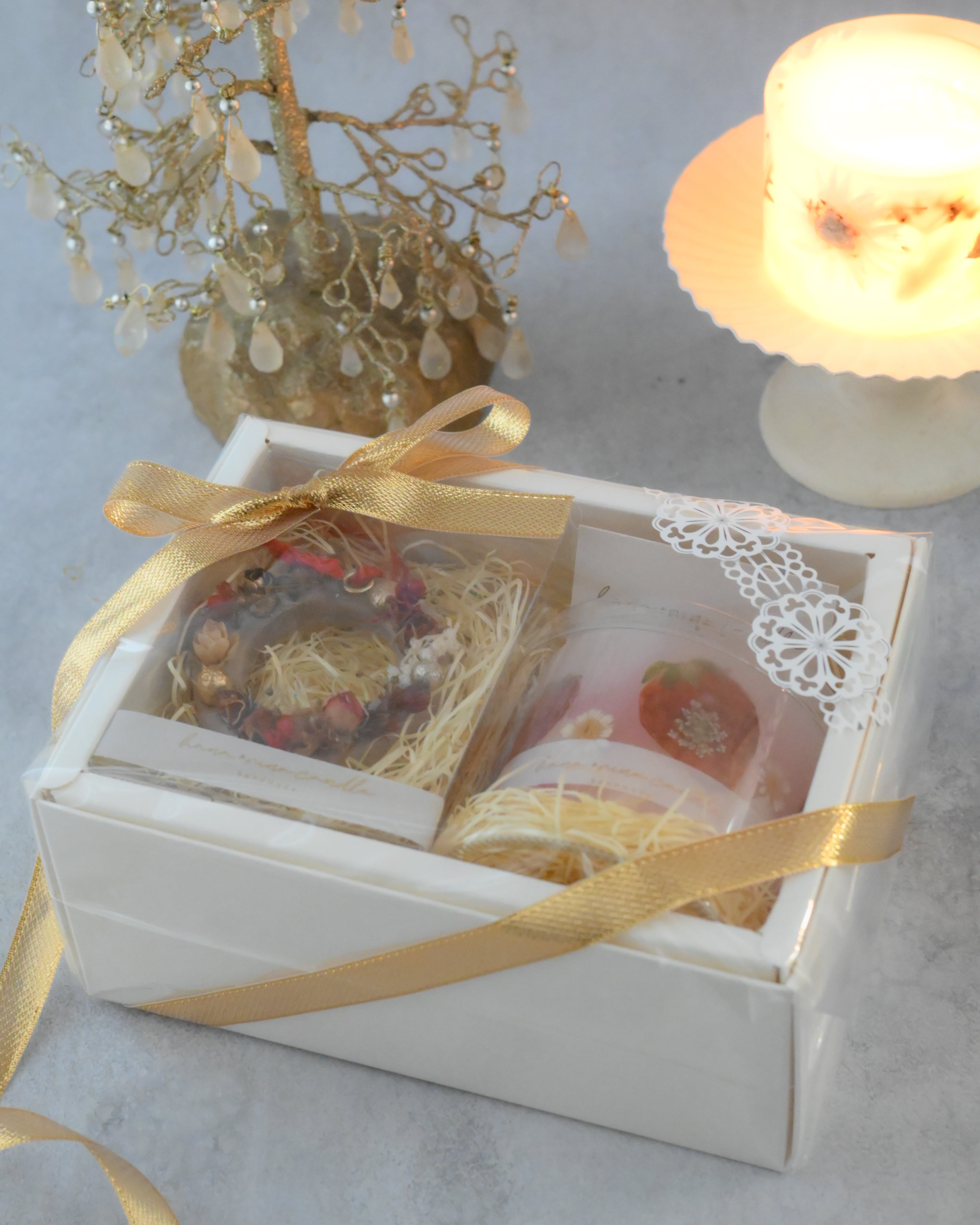 Strawberry candle S(ストロベリーローズの香り)とオーナメントリースサシェのギフトセット