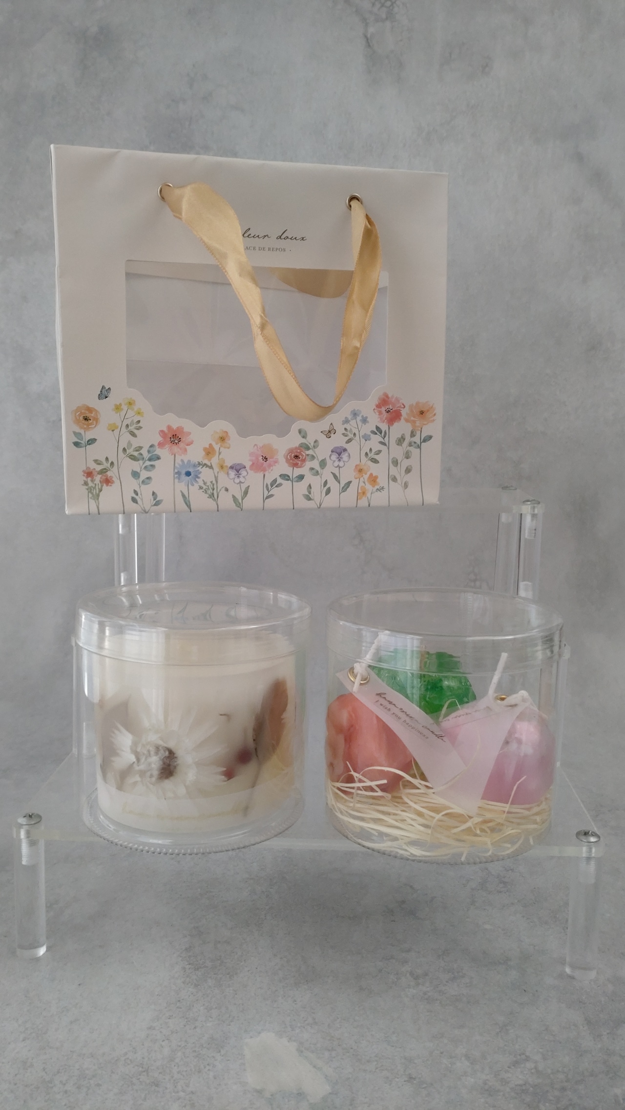 ボタニカルキャンドル、ストーンキャンドルの2点の詰め合わせ。