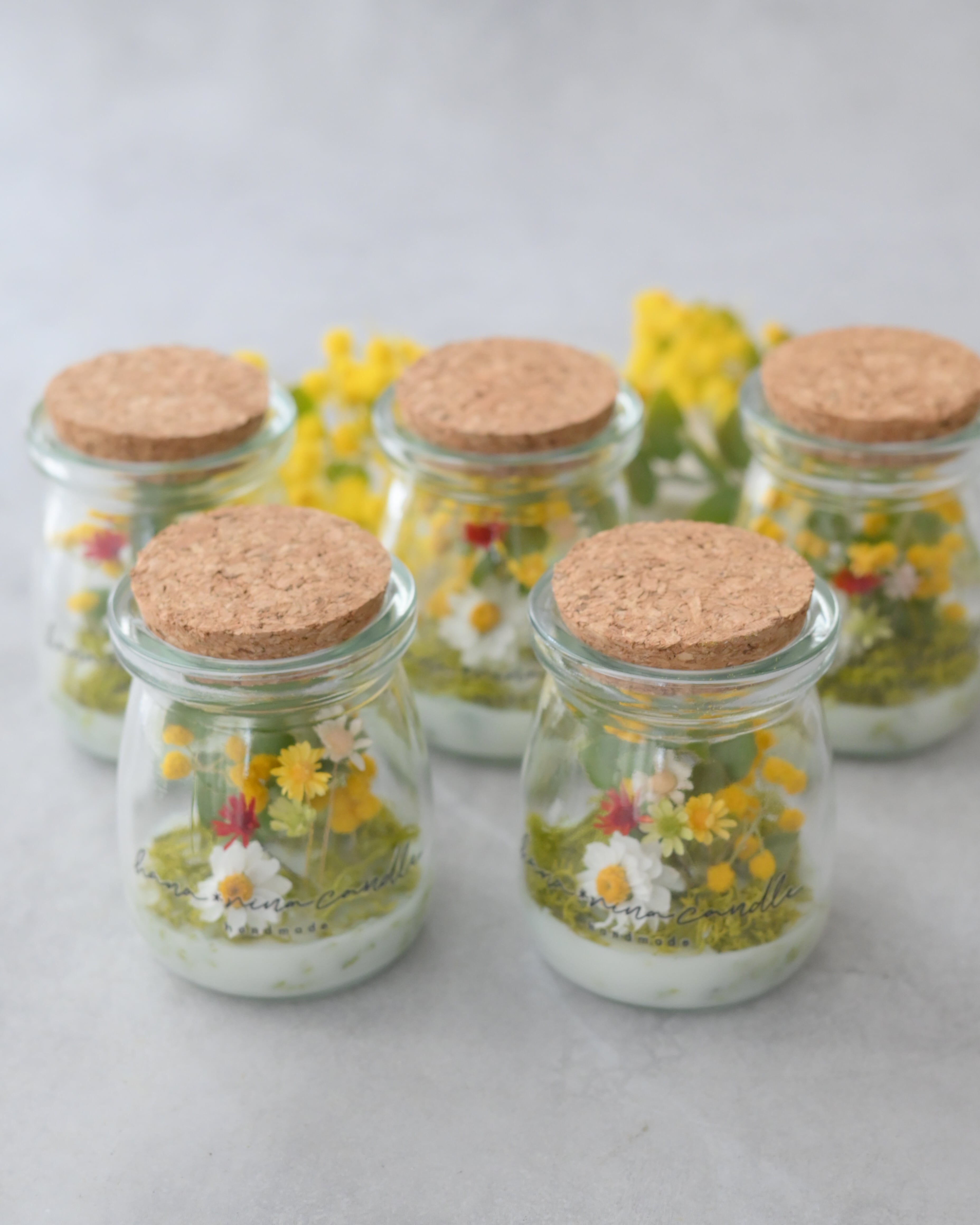 ボトルの中にミモザやお花の庭を閉じ込めて
