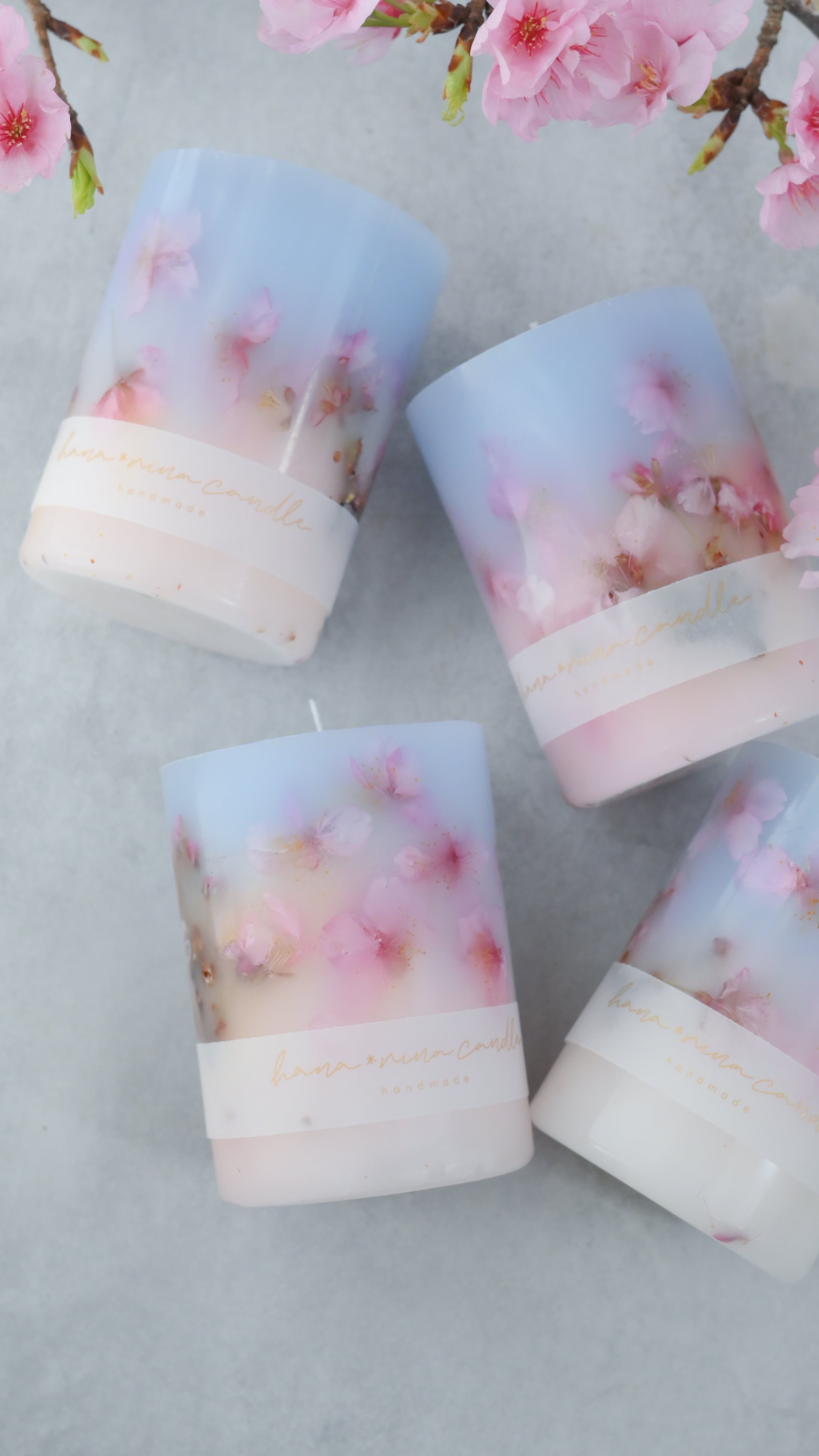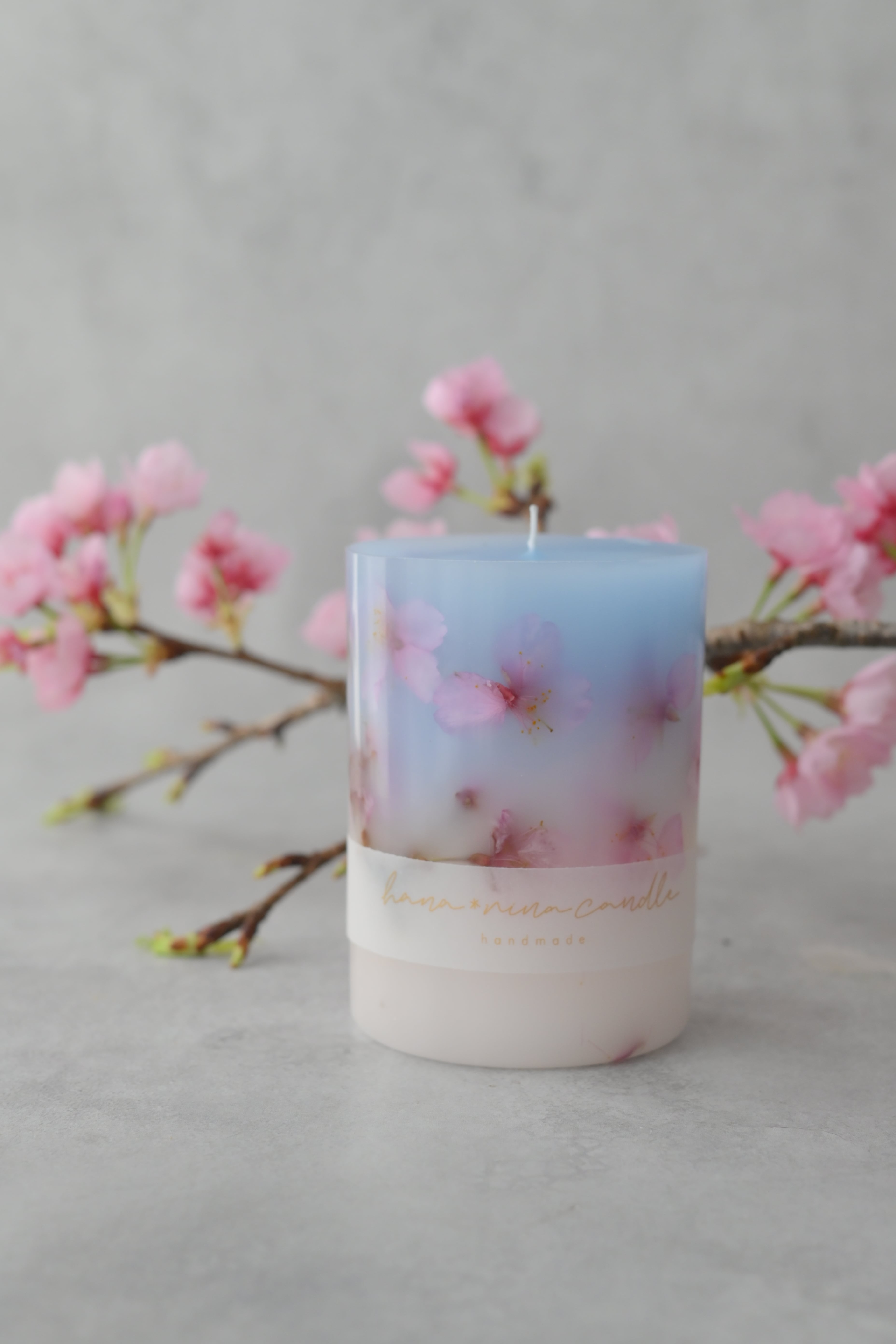 灯してみていただくと、オレンジの炎が暖かく、本物の桜の花が浮かび上がり、桜餅のような上品で優しい香りがほのかに香りほっこりします。