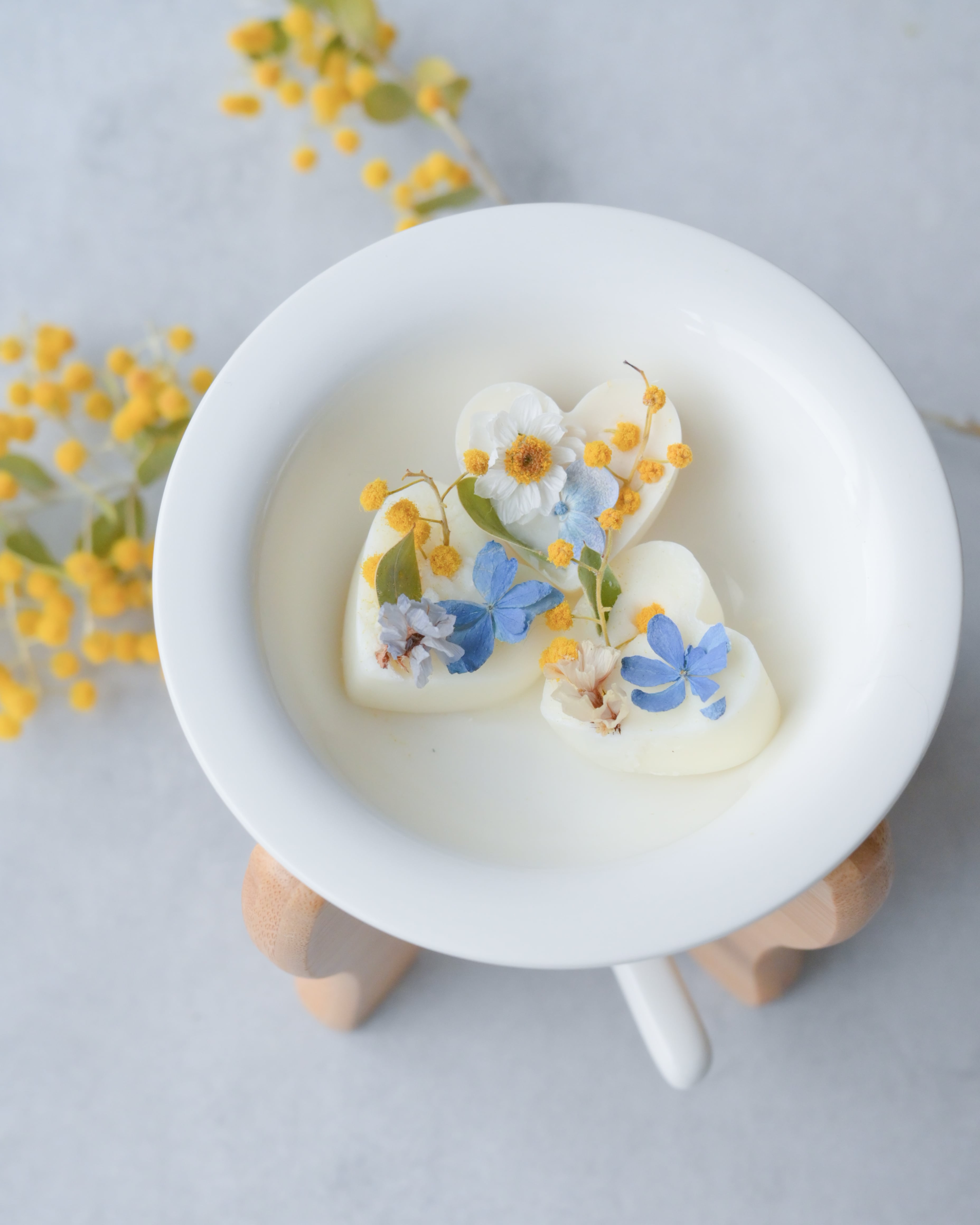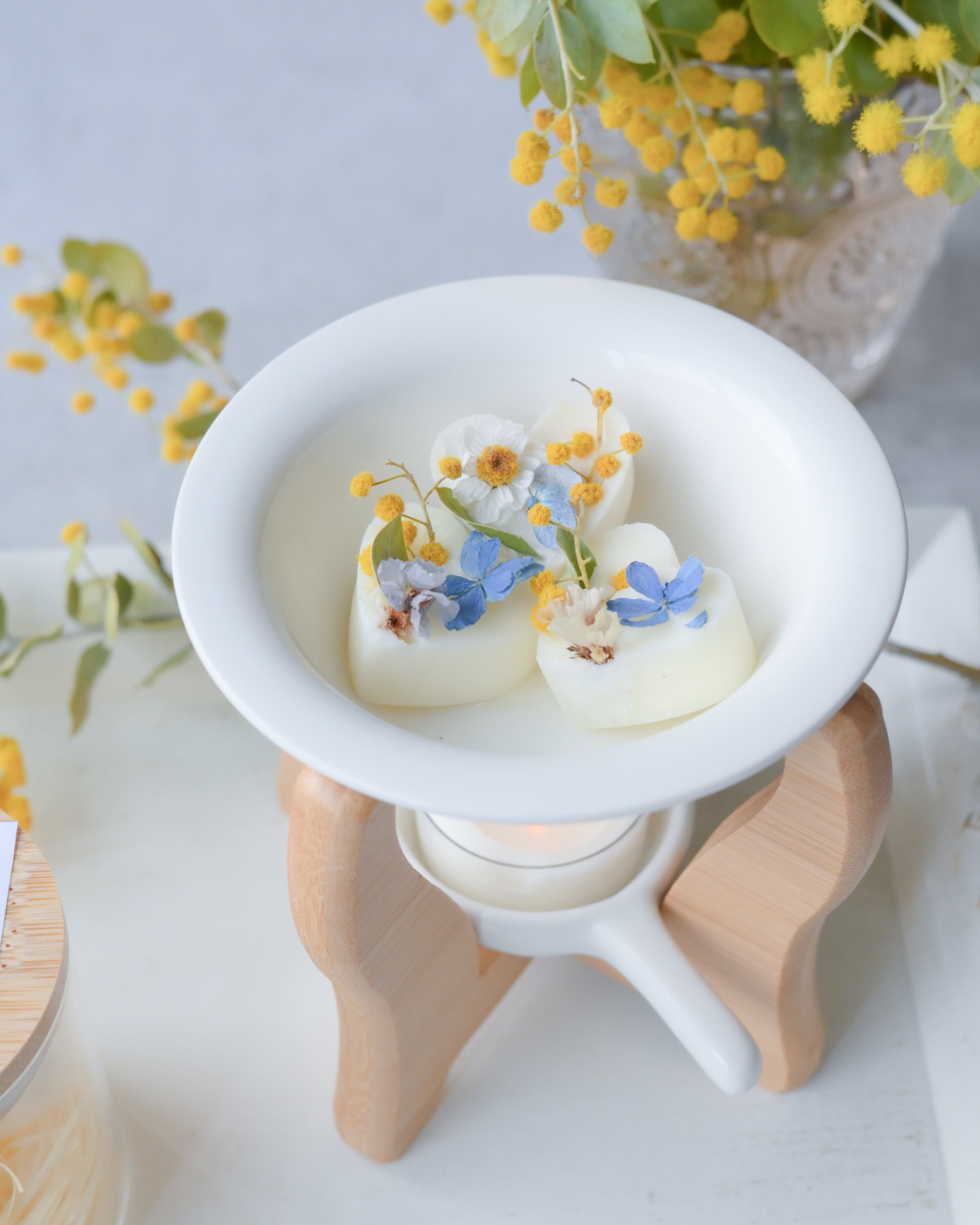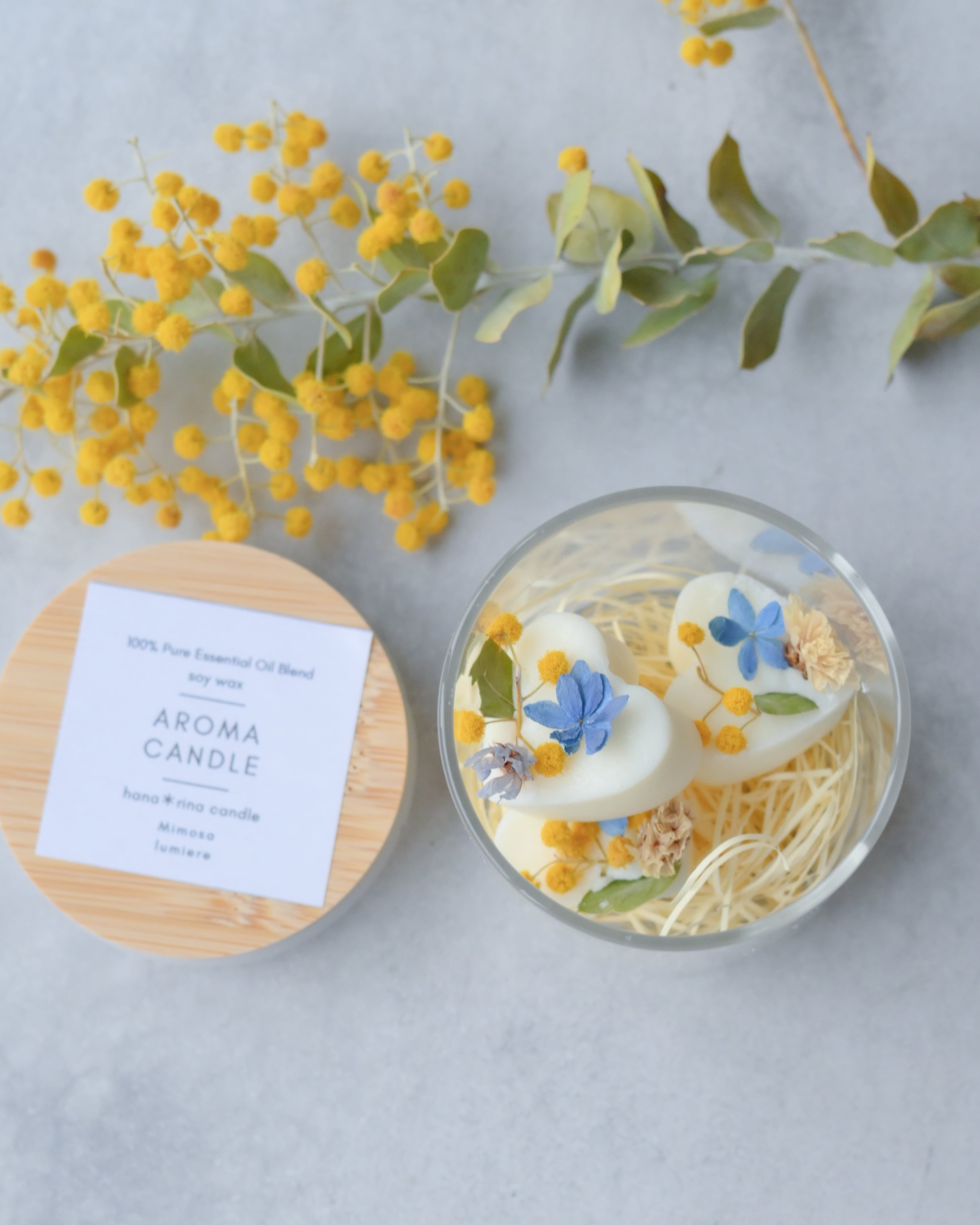 青い紫陽花とミモザのキャンドルメルトは、